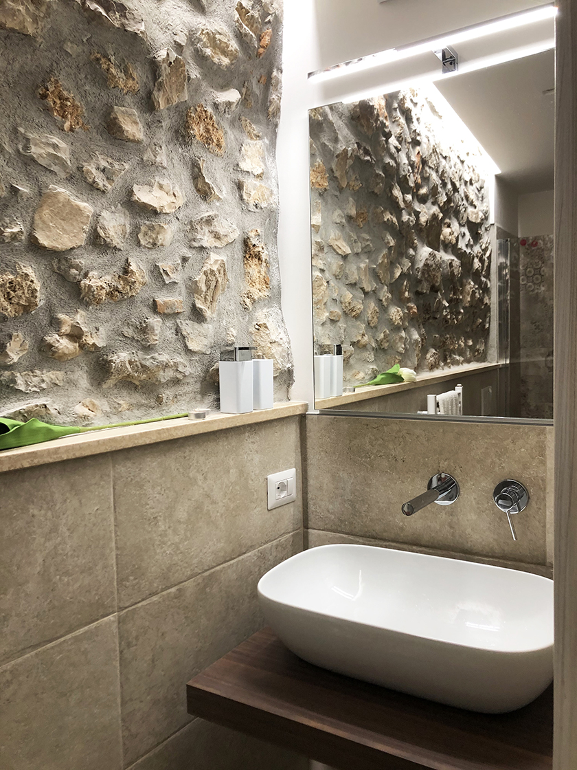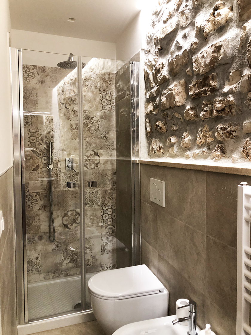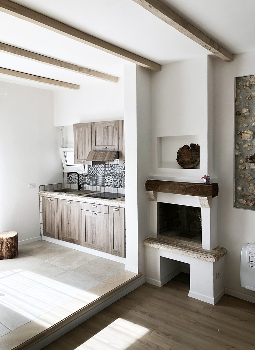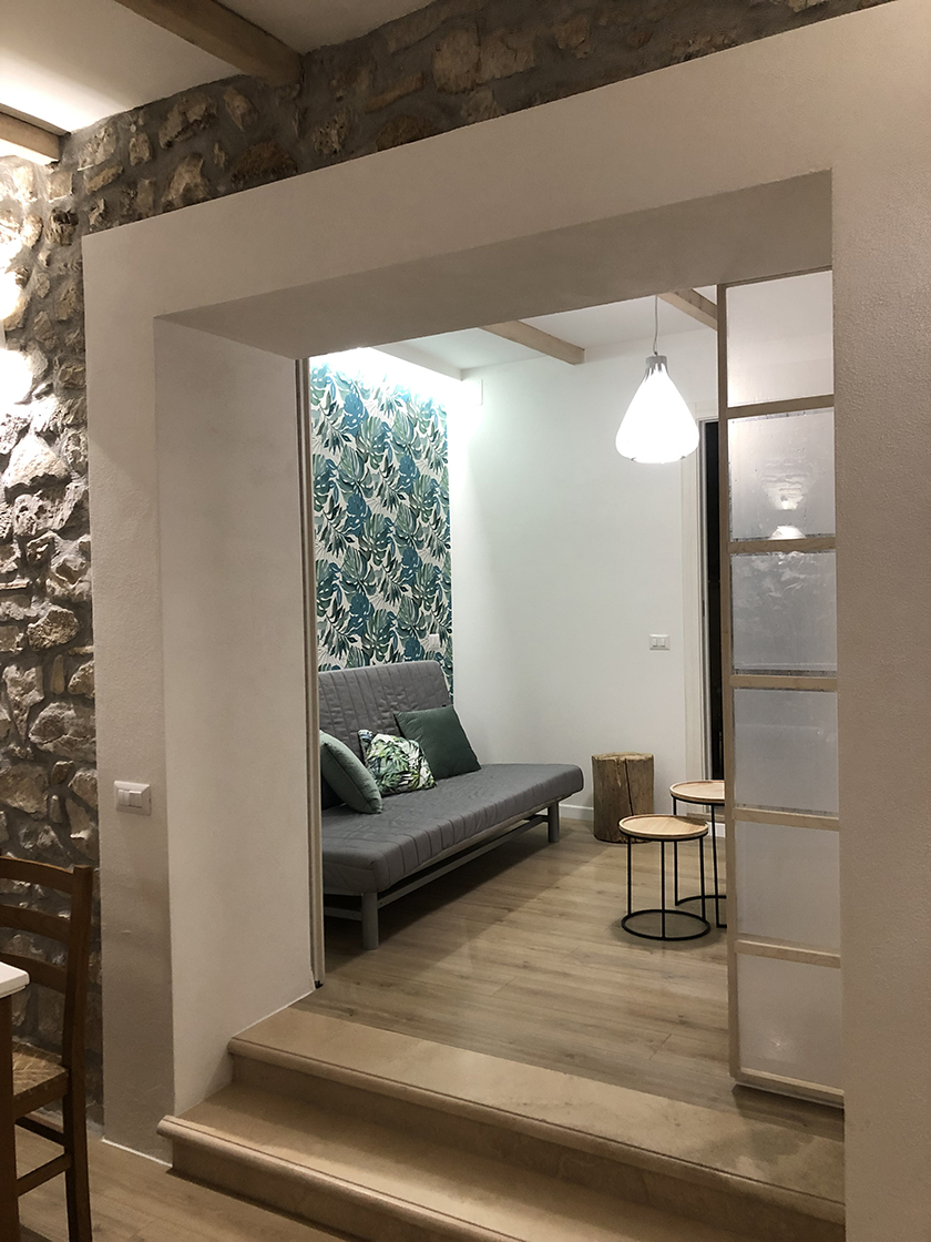 L'appartamento è composto da una camera matrimoniale con bagno interno, soggiorno con camino e angolo cottura. Una zona leggermente separata con un divano letto , e secondo bagno. Una grande porta scorrevole permette di separare la zona divano letto, e avere quindi una seconda camera con bagno dedicato.