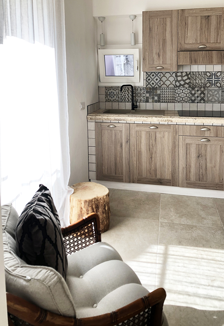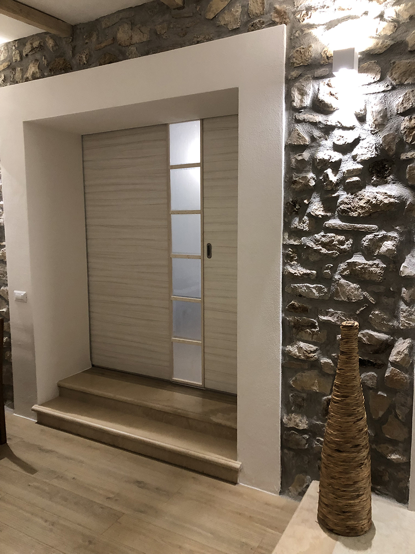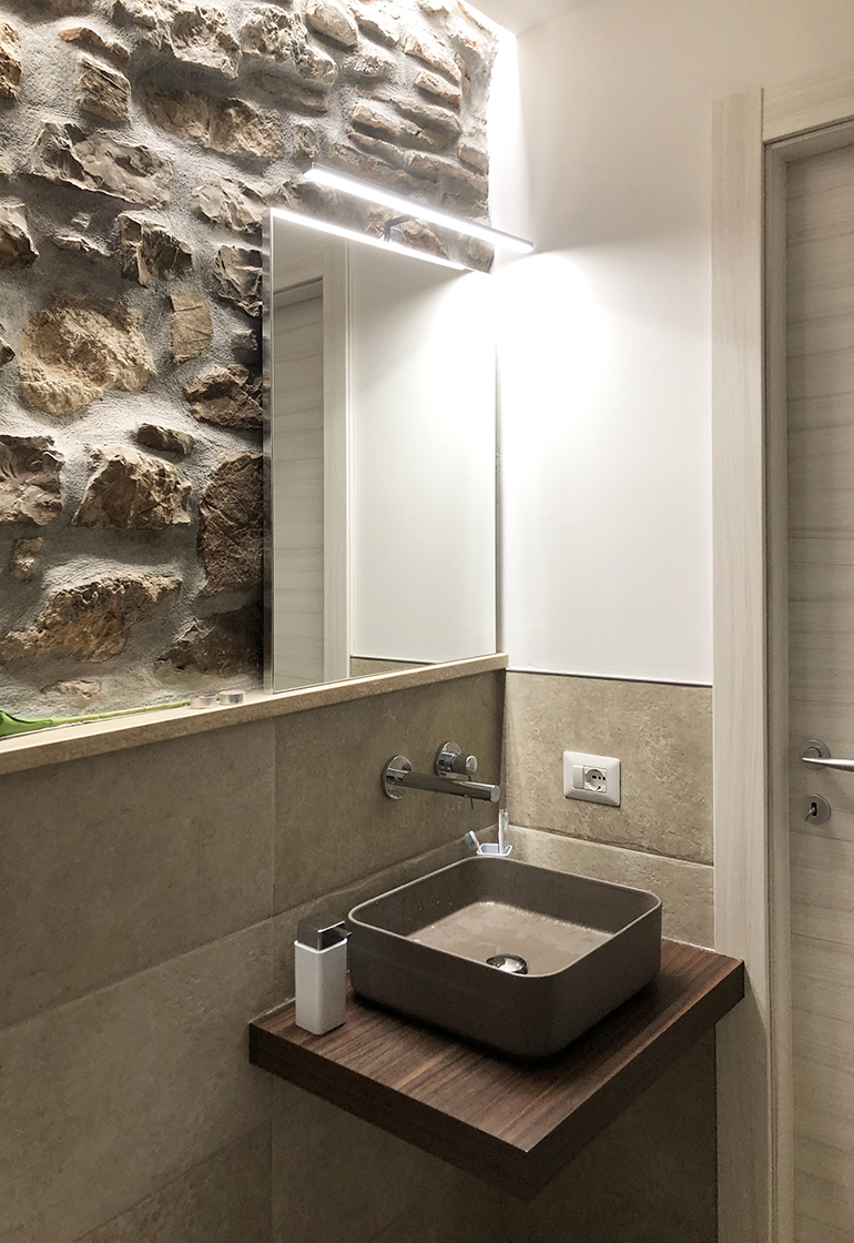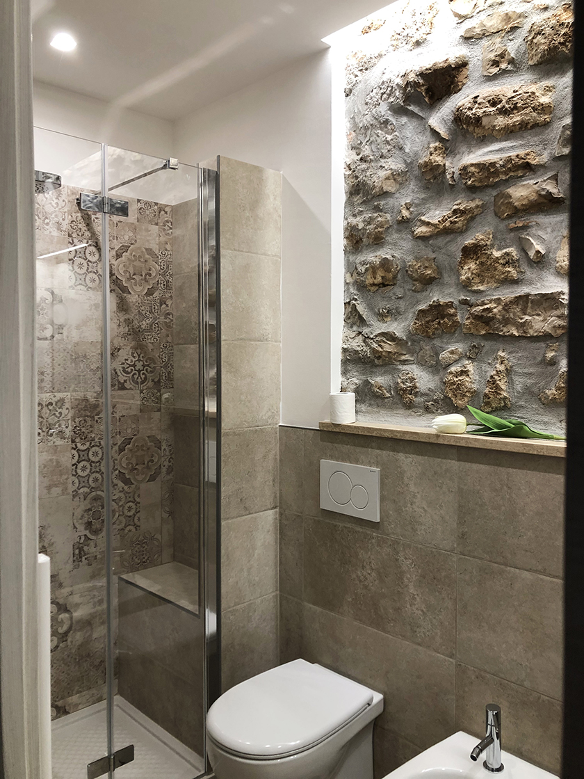L'appartamento è composto da una camera matrimoniale con bagno interno, soggiorno con camino e angolo cottura. Una zona leggermente separata con un divano letto , e secondo bagno. Una grande porta scorrevole permette di separare la zona divano letto, e avere quindi una seconda camera con bagno dedicato.
